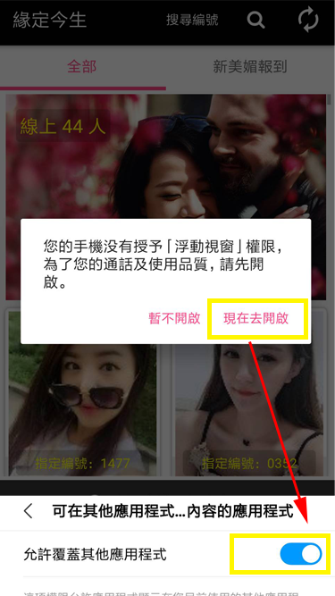 再打開[允許附蓋其它程式]